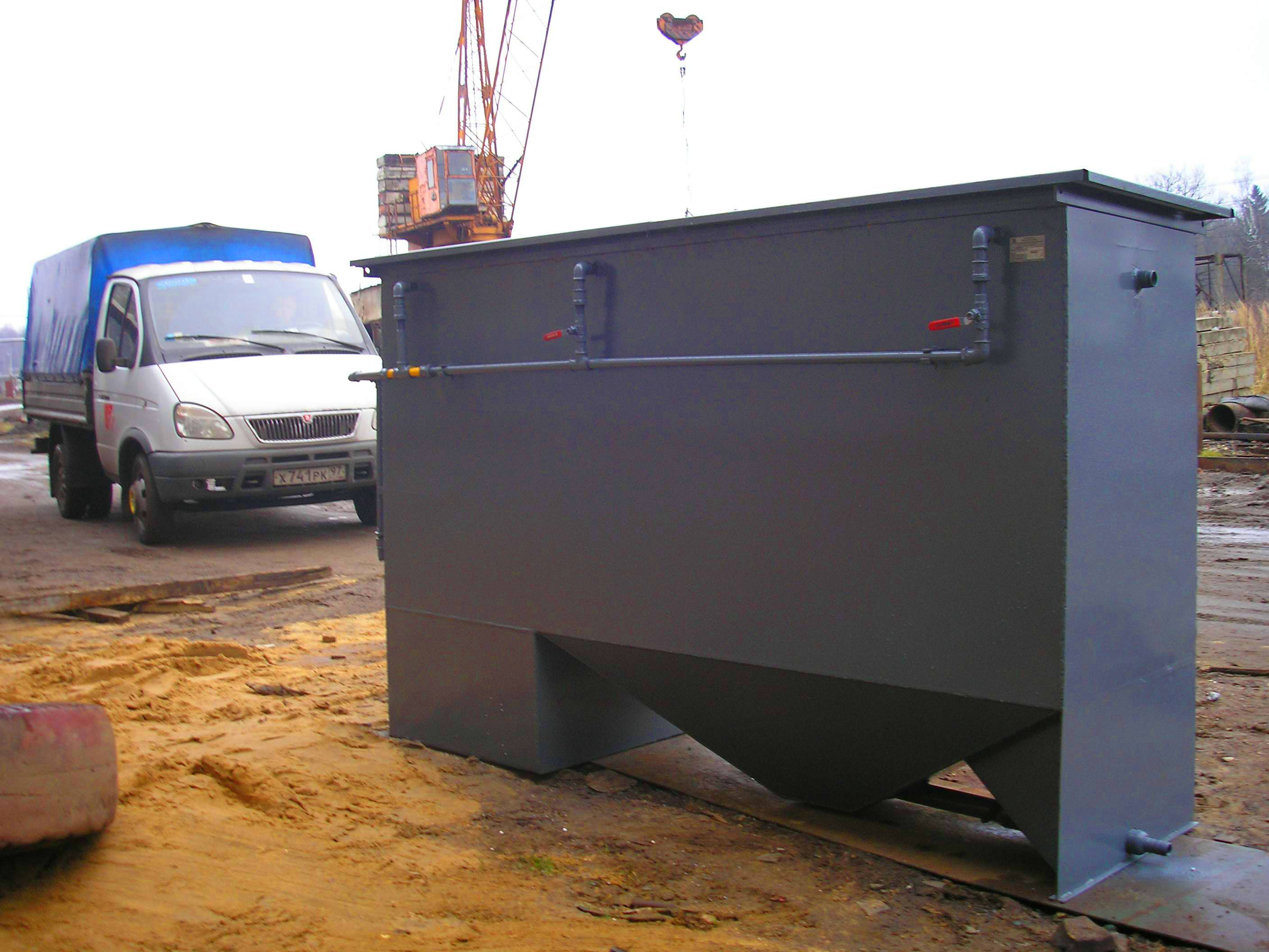 Контейнер для песка и для осадка: 0,6м х 1,0м х 1,0м.